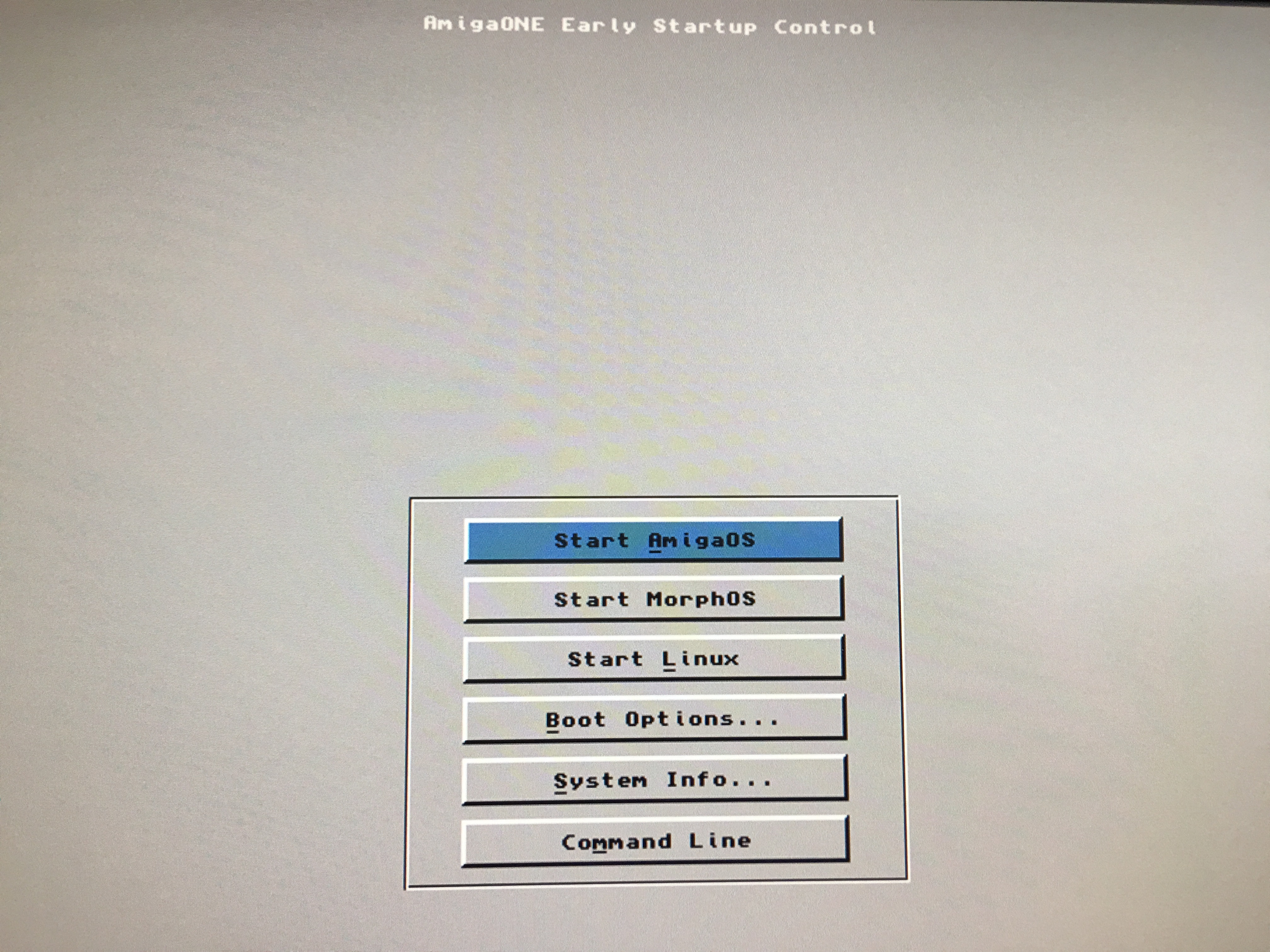 You can set up the button "Start Linux" in the AmigaONE Early Startup Control of the AmigaOne X5000 with the following commands: