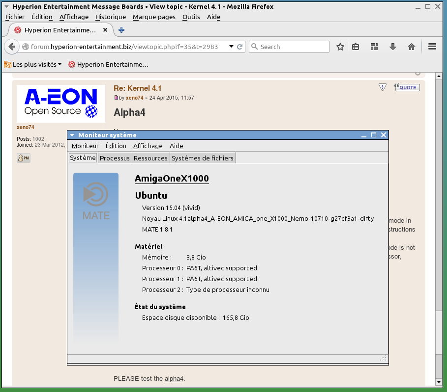 And here is the alpha2: vmlinux-4.1-alpha2-AMIGA_one_X1000.tar.bz2