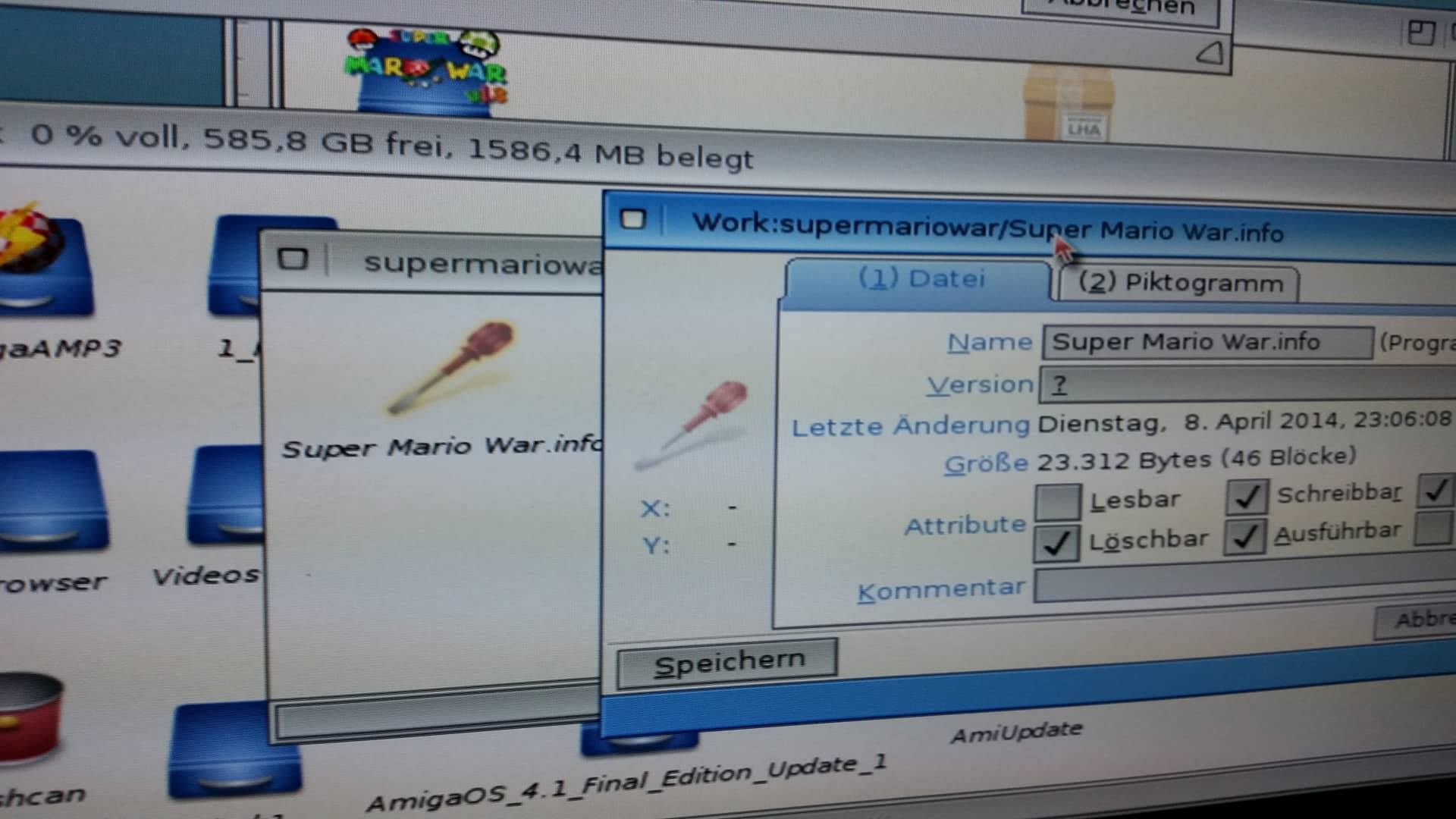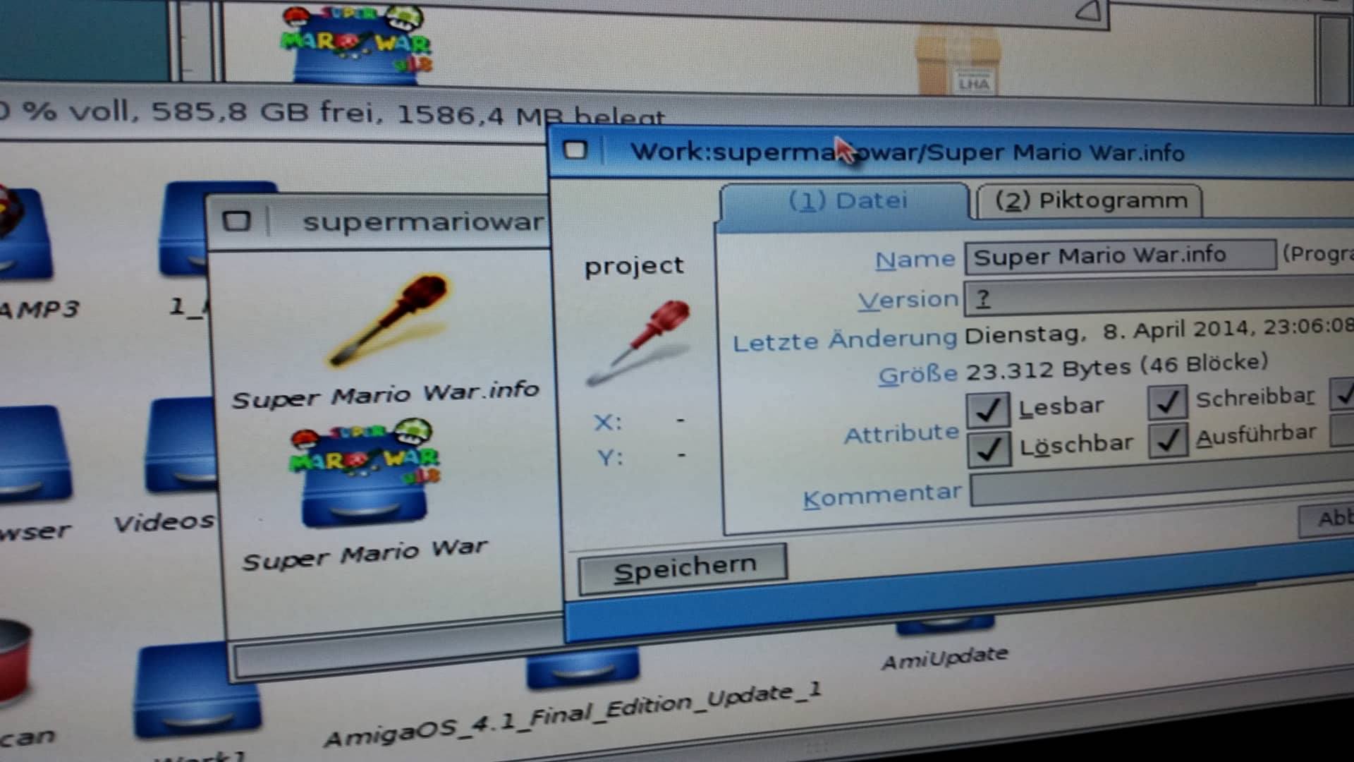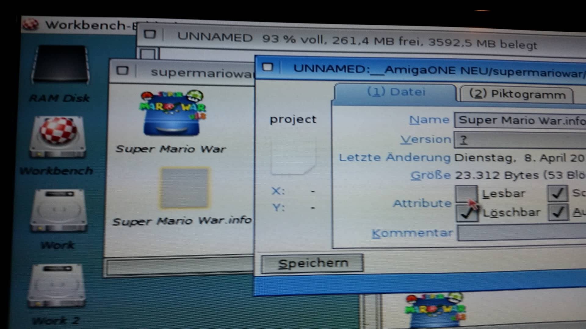 When I mark the .info of the Folder as non-readable ON THE HDD, the Folder get's renamed to Super Mario War.info, turns into a PROJECT type, and there is a .info.info file, also (seems to be still the "original" .info file).