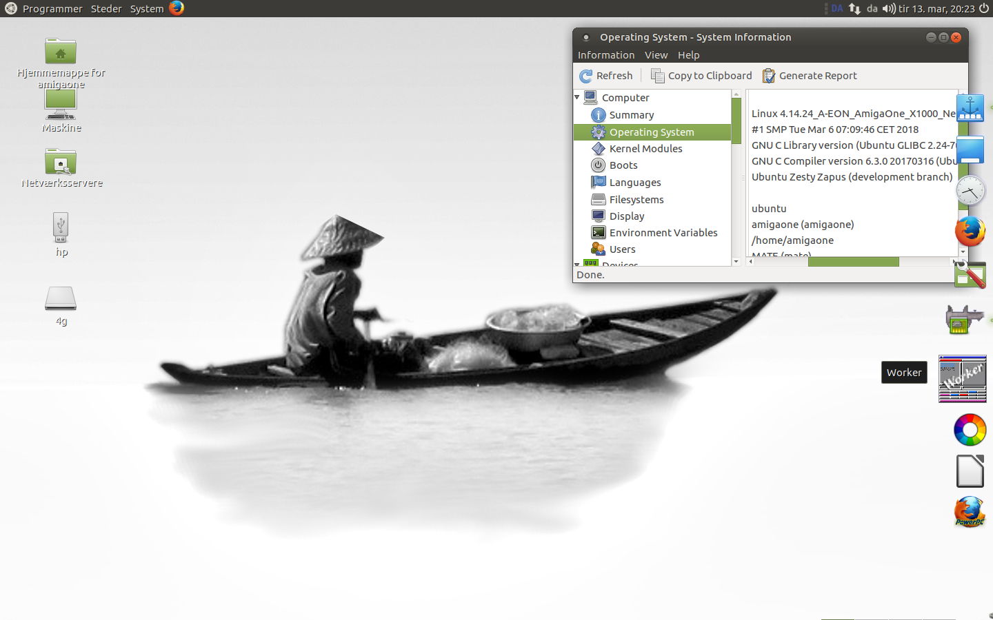 Debian Sid PowerPC with the stable longterm kernel 4.14.27, with the new HardInfo 0.6, and with a connected N64 to a WinTV: