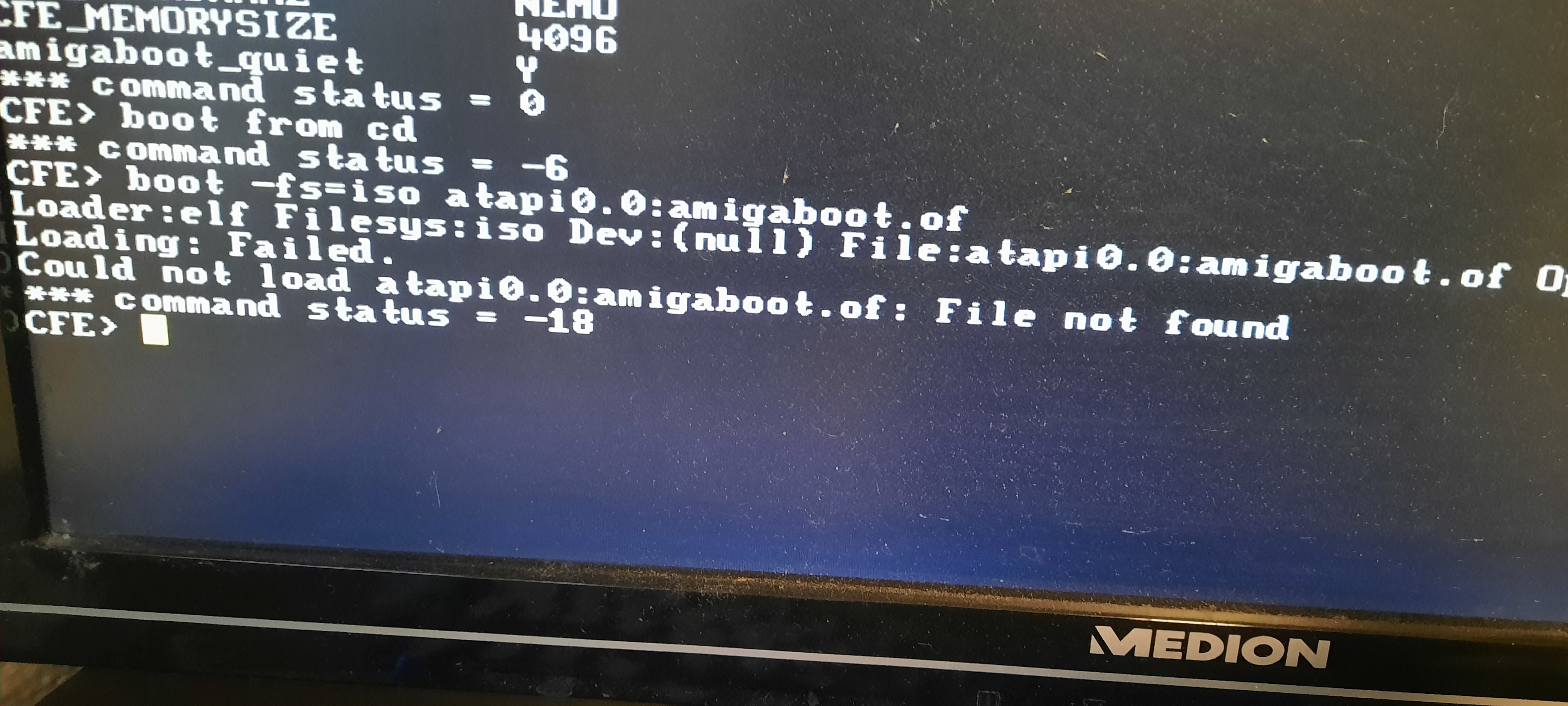 If I boot from an amiga partition and then insert the CD amigaos4.1 FE and then do a soft reset, then the CD will boot into the installer.