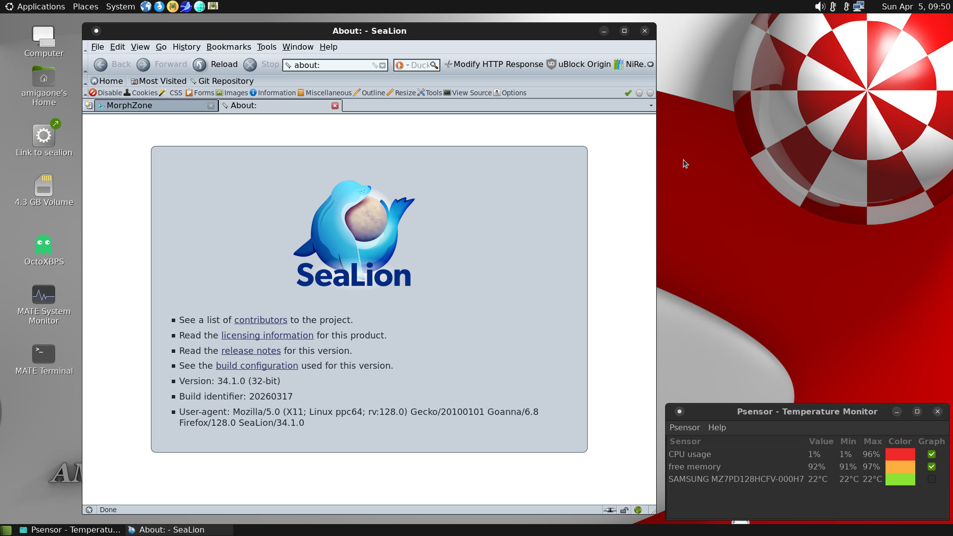 Re: SeaLion - A web browser for 32-bit PowerPC Linux (Void / Debian 11)