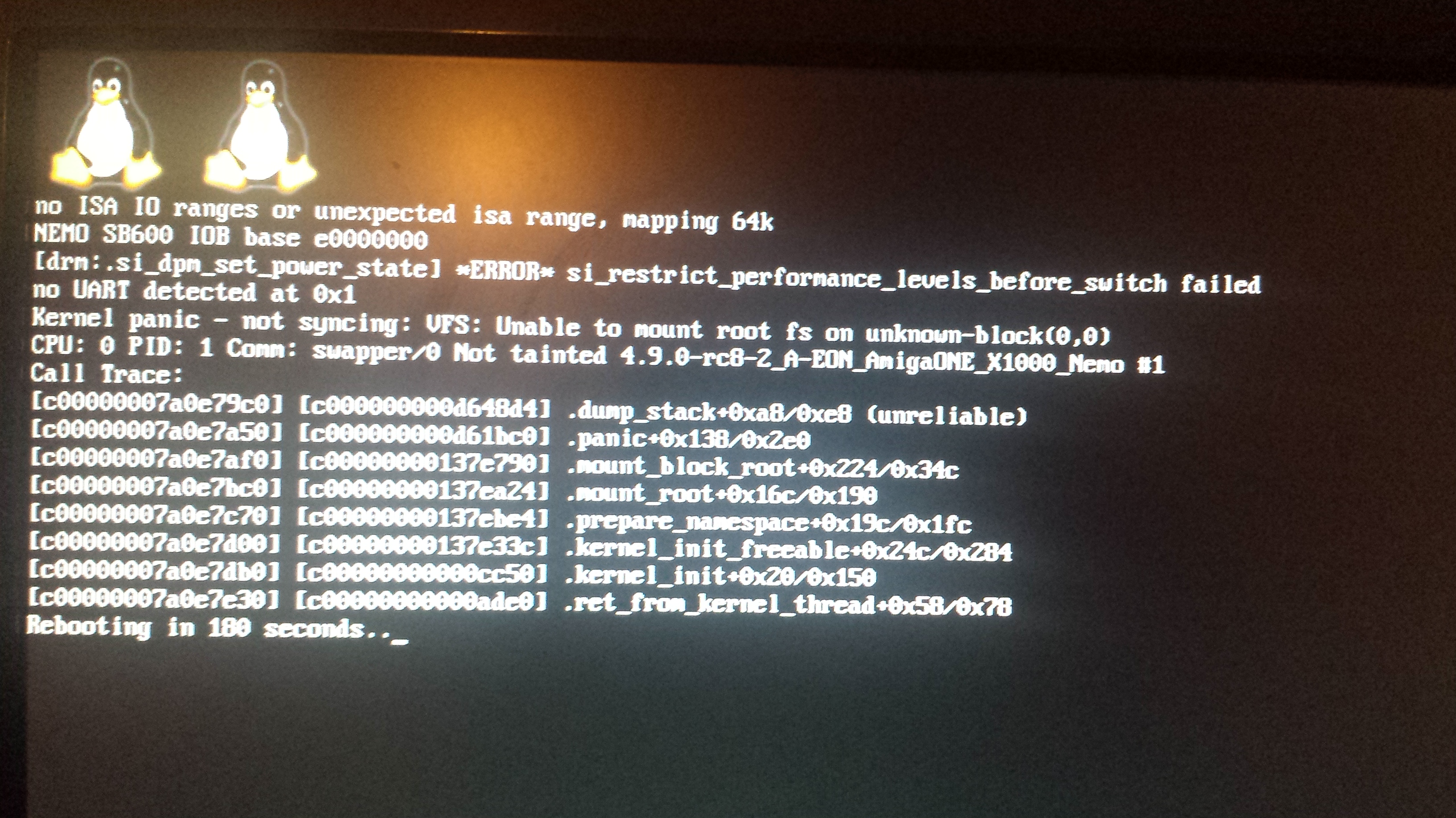 This is what i see if i use UUID in bootargs: After booting once from LIVE DVD, then i can boot from HD with root=/dev/sdc3.