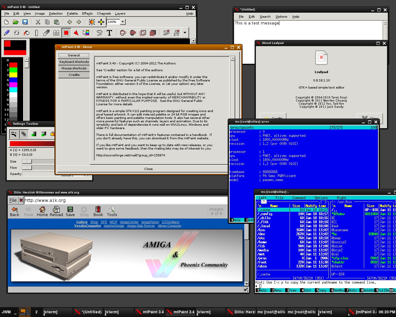AmiWM is an X window manager that tries to make your display look and feel like an Amiga Workbench screen. It is fully functional and can do all the usual window manager stuff, like moving and resizing windows. You can start AmiWM with the script "startamiwm".