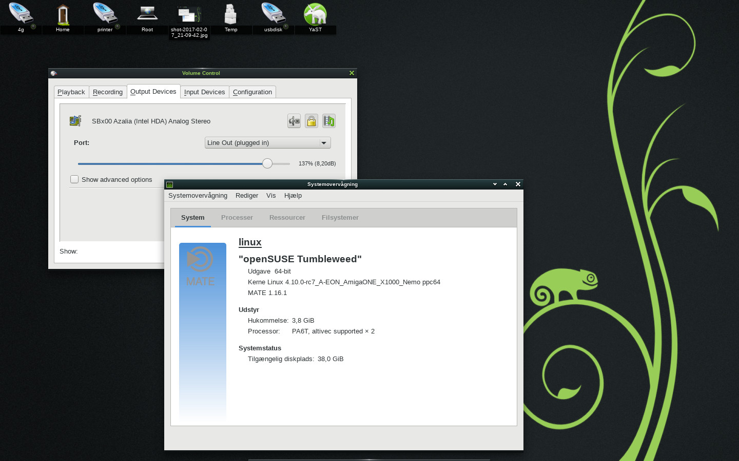 That is really a surprise! Thank you for testing the RC7 with openSUSE Tumbleweed PPC64!musa wrote:until now it is not managed to get sound in openSUSE. But to my surprise there came automatically sound when I booted whiz with linux-4.10.rc7.