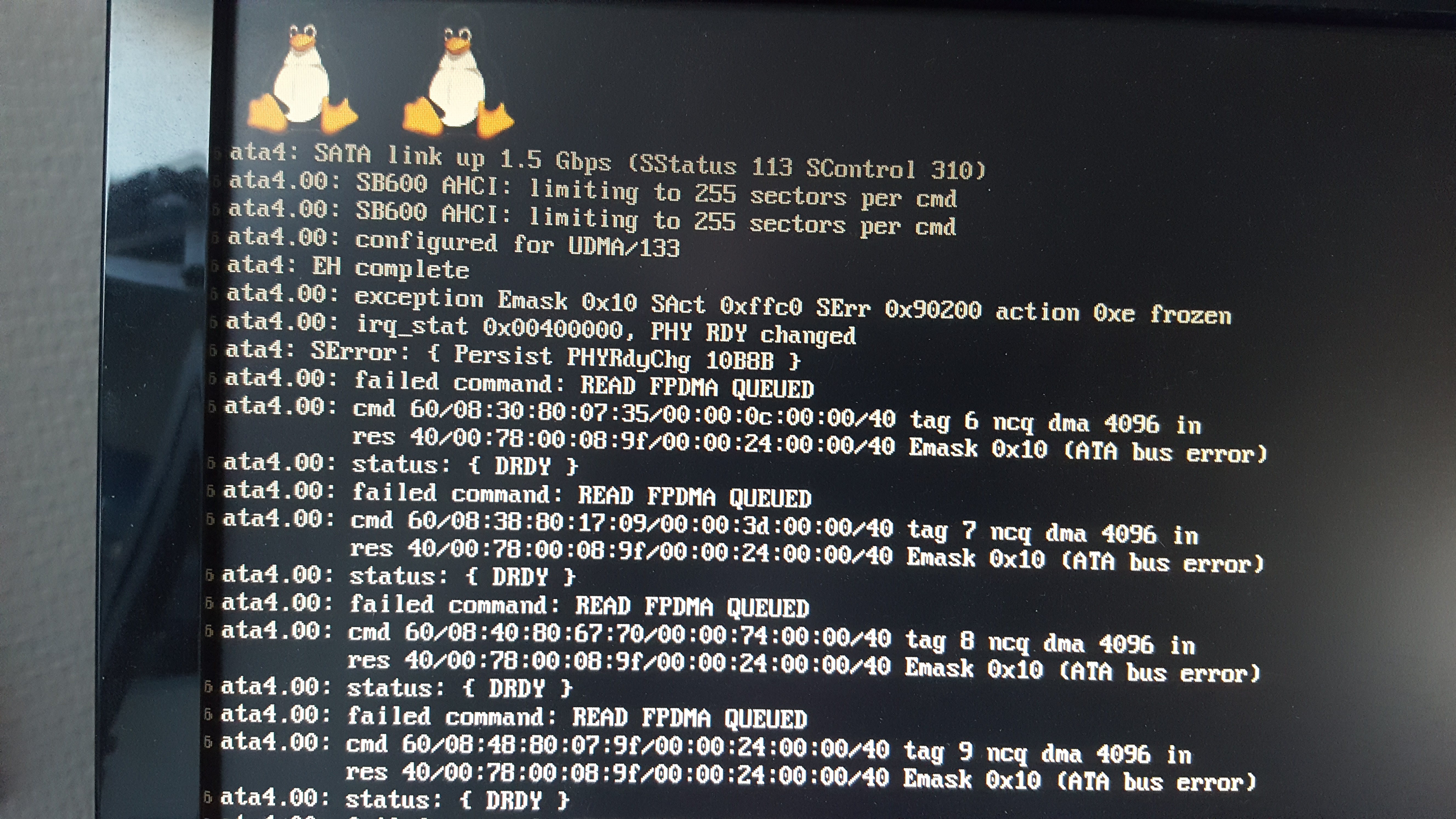 There are a number of errors from sata4.00: as you can see in my photo. Maybe it's my sata cable. I have ordered a new one.