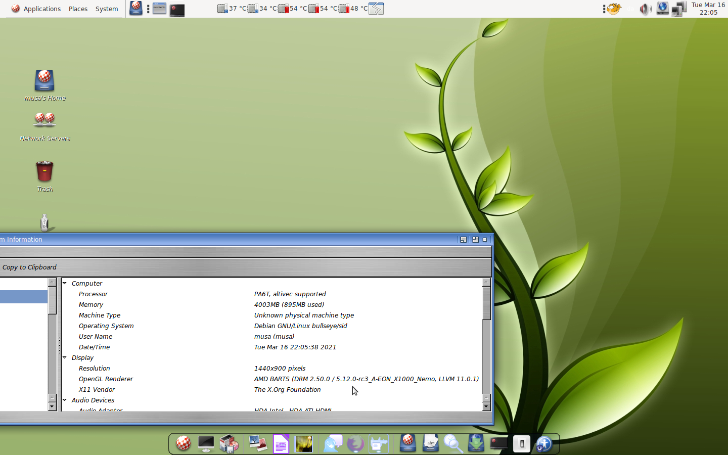 Debian bullseye/sid bootet with kernel 5.12 rc3