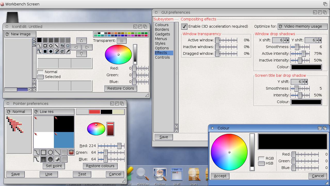 - Not really a bug, but compared to OS3.x this is missing a color chooser control.