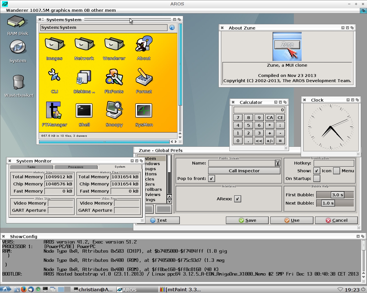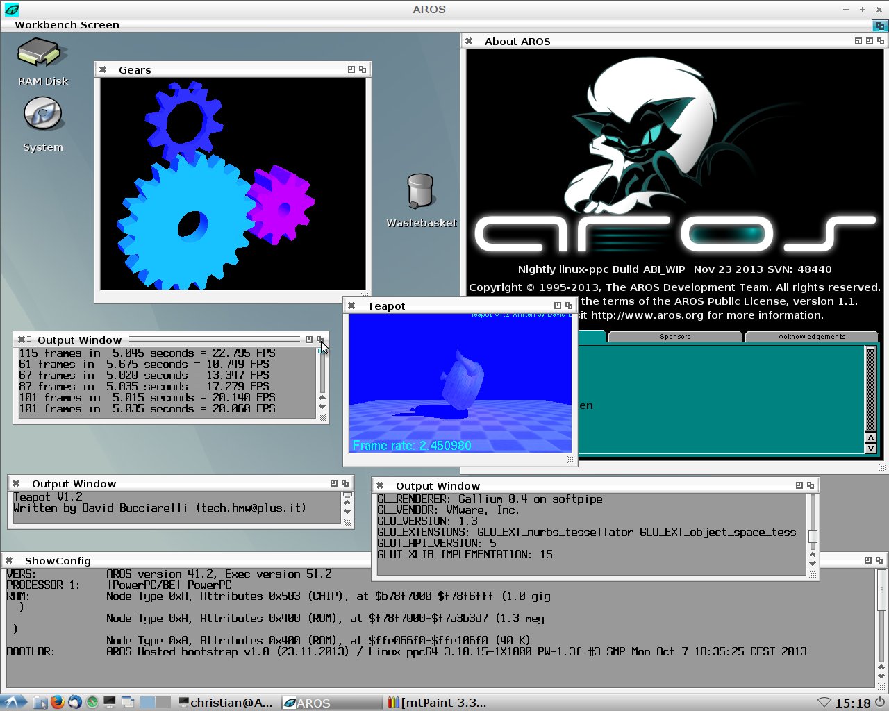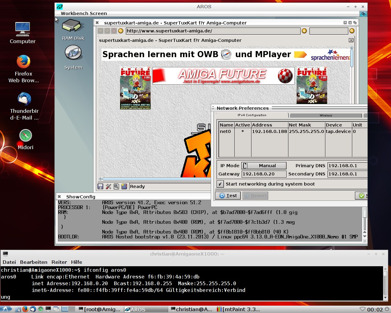 Note: This is not a nativ AROS installation. Therefore this not a AROS topic. This is a Linux topic. With AROS hosted you can run AROS PPC applications on Linux. AROS hosted is a Linux application.