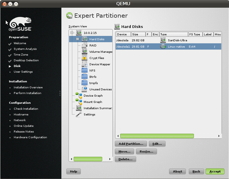 mount -t ext4 /dev/sdXX /mnt/opensuse
