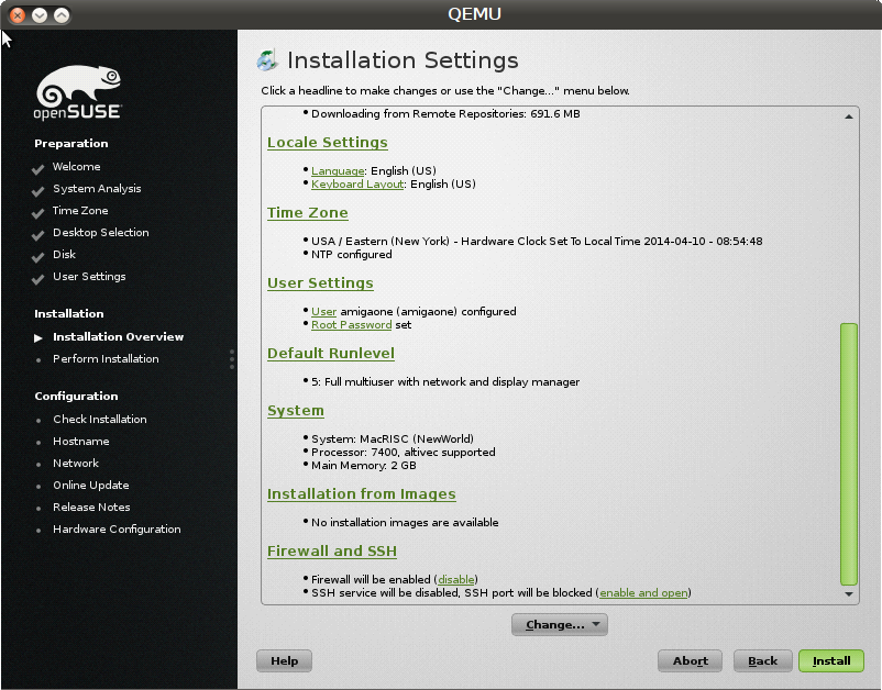 Download the openSUSE tarball from the following URL: openSUSE-13.1-1-x1000-ppc.tar.gz
