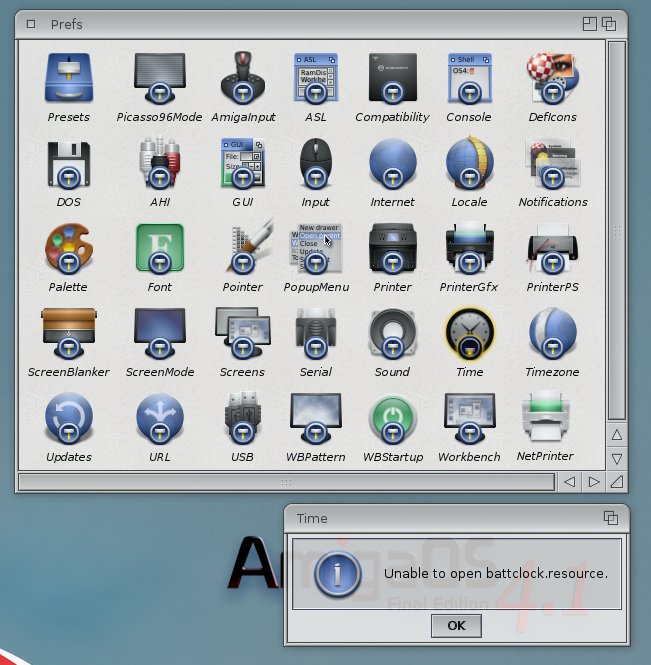 Can you check if you have a file "battclock.resource.kmod" in your Kickstart directory and post the contents of your Kicklayout file?Nisse321 wrote: 1. Time prefs can't open battclock.resource (time can't be saved, and must be adjusted every time the computer starts up) (picture 1)