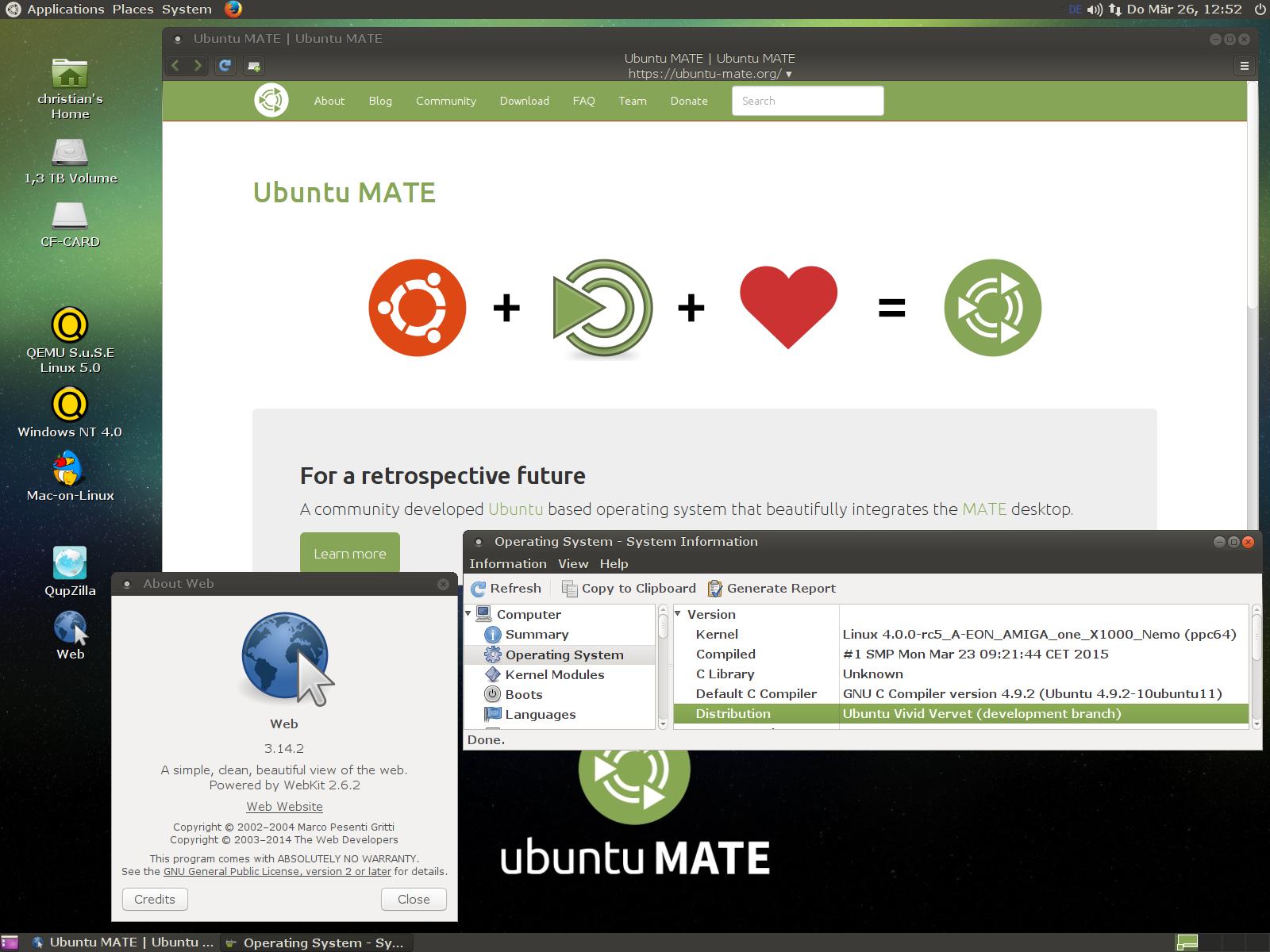I have good news for all Vivid 15.04 testers. Epiphany is available for Lubuntu, Xubuntu, and ubuntu MATE 15.04 PowerPC. It's a very fast WebKit browser.